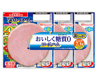 糖質0(※)で、一般のロース(七訂 日本食品標準成分表)に比べカロリーを25%カットしたロースハムです。(※食品表示基準に基づいて糖質0.5g(100gあたり)未満を0としています。)